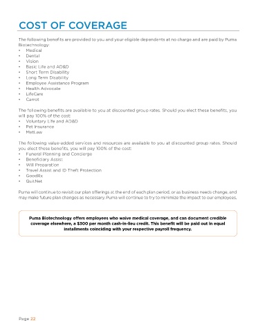 The following benefits are provided to you and your eligible dependents at no charge and are paid by Puma