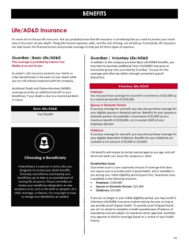 This coverage is provided by Column Five In addition to the company provided Basic Life/AD&D benefits, you