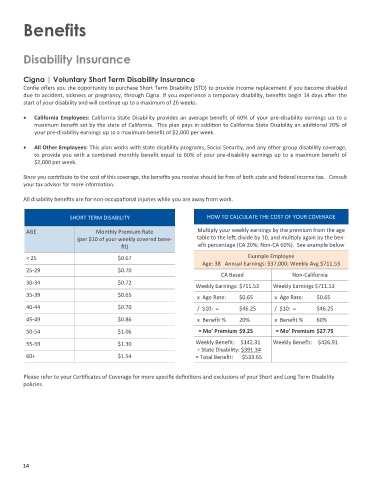 due to accident, sickness or pregnancy, through Cigna. If you experience a temporary disability, benefits begin 14 days after the
