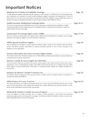 Medicare Part D Notice of Creditable Coverage ………………………………………………….. Page 26