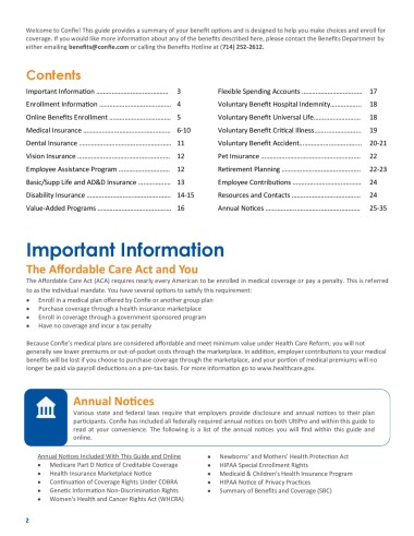Welcome to Confie! This guide provides a summary of your benefit options and is designed to help you make choices and enroll for