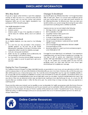 As an eligible employee, you may enroll at the following • Change in your residence or workplace (if your benefit