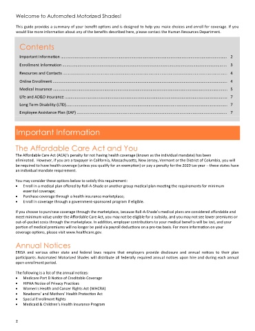 participants. Automated Motorized Shades will distribute all federally required annual notices upon hire and during each annual
