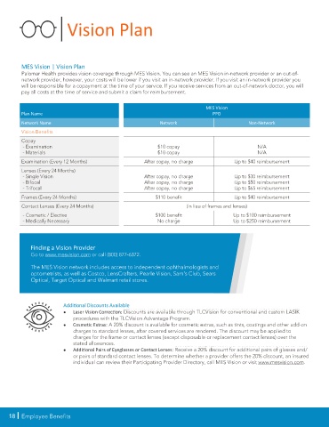 Vision Plan MES Vision | Vision Plan MES Vision Plan Name PPO Network Name Network Non-Network Finding a Vision Provider Additional Discounts Available • Laser Vision Correction: • Cosmetic Extras: • Additional Pairs of Eyeglasses or Contact Lenses: