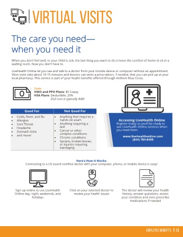 LiveHealth Online let you see and talk to a doctor from your mobile device or computer without an appointment.