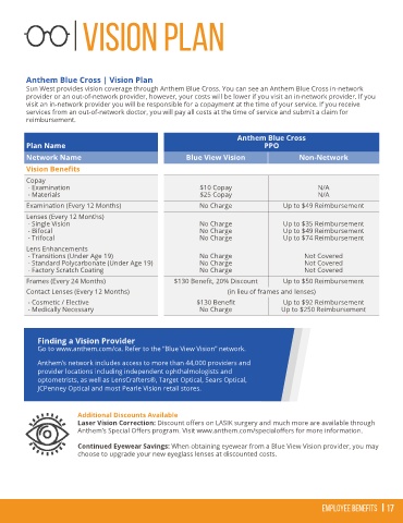 Sun West provides vision coverage through Anthem Blue Cross. You can see an Anthem Blue Cross in-network