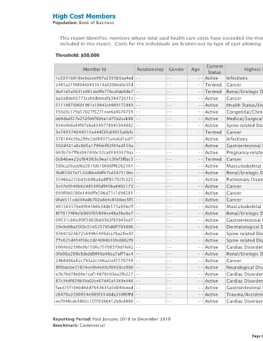 included in this report. Costs for the individuals are broken-out by type of cost allowing for identification of which type of services are driving the members' costs.