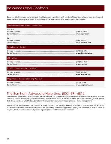 unable to resolve them directly with the insurance carriers listed above. With the Burnham Advocate help-line, you will receive