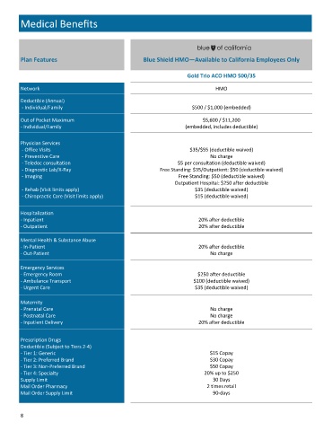 Plan Features Blue Shield HMO—Available to California Employees Only