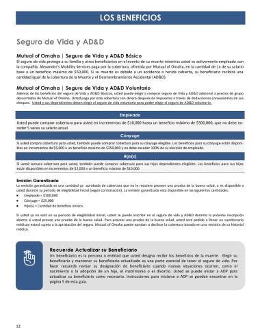 la compañía. Alexander’s Mobility Services paga por la cobertura, ofrecida por Mutual of Omaha, en la cantidad de 1x de su salario