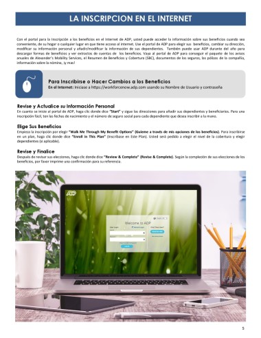 conveniente, de su hogar o cualquier lugar en que tiene acceso al internet. Use el portal de ADP para elegir sus beneficios, cambiar su dirección,