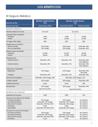 - Especialidad Deducible, 50% Max $150 Deducible, $50 Copago No Cubierto