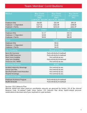 Medical,  dental  and  vision  premium  contribution  amounts  are  governed  by  Section  125  of  the  Internal