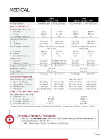 • Cigna PPO: Visit www.cigna.com. Click Find a Doctor > Plans through your employer or school >