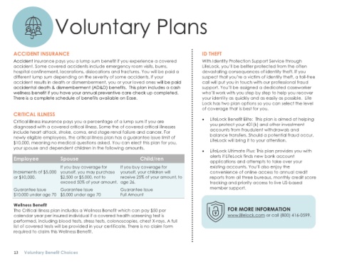 The Critical Illness plan includes a Wellness Benefit which can pay $50 per FOR MORE INFORMATION