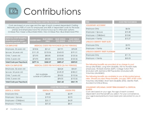 CA Base Plan: Kaiser or Blue Shield HMO / Non CA Base Plan: Blue Shield Gold PPO Employee + Spouse $10.48