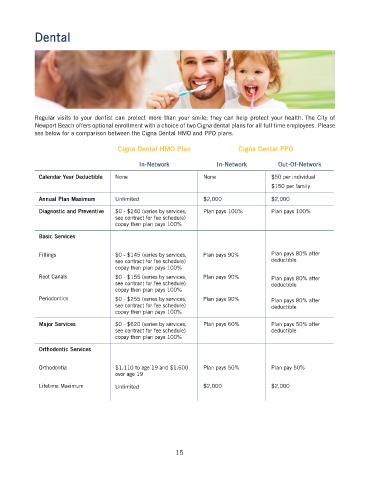 Newport Beach offers optional enrollment with a choice of two Cigna dental plans for all full time employees. Please