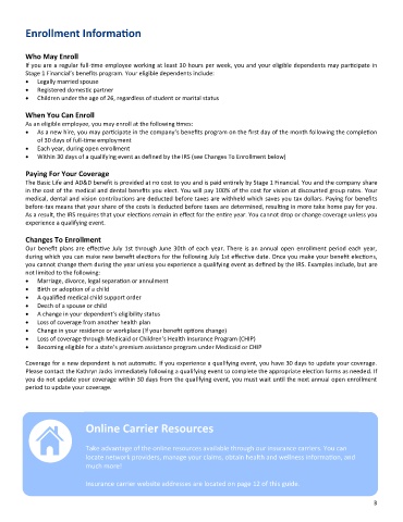 Stage 1 Financial’s benefits program. Your eligible dependents include: