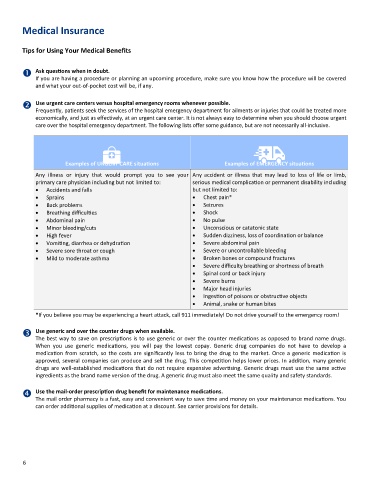 Use urgent care centers versus hospital emergency rooms whenever possible.