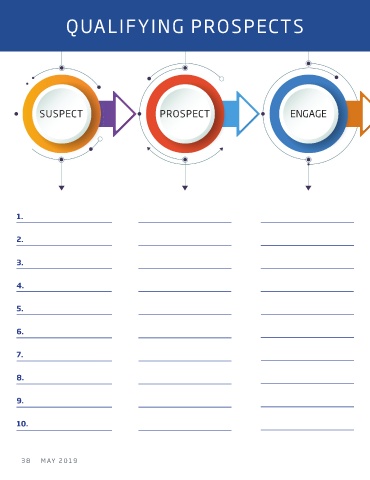 QUALIFYING PROSPECTS SUSPECT PROSPECT ENGAGE 1. 2. 3. 4. 5. 6. 7. 8. 9. 10. 38 MAY 2019
