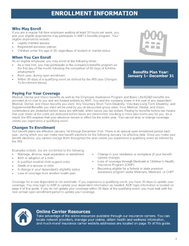 and your eligible dependents may participate in AMT’s benefits program. Your