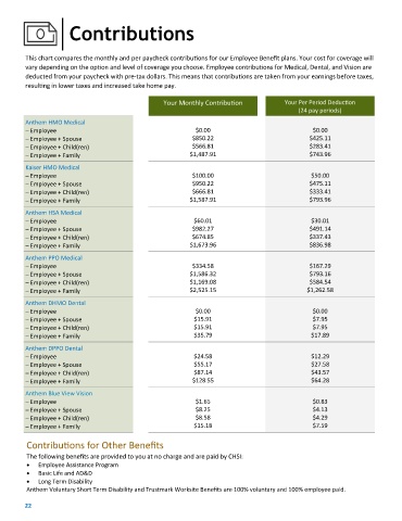 vary depending on the option and level of coverage you choose. Employee contributions for Medical, Dental, and Vision are