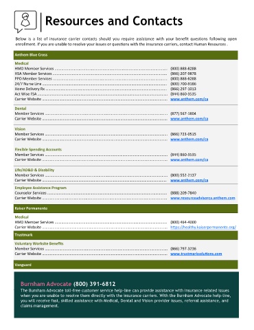 enrollment. If you are unable to resolve your issues or questions with the insurance carriers, contact Human Resources .