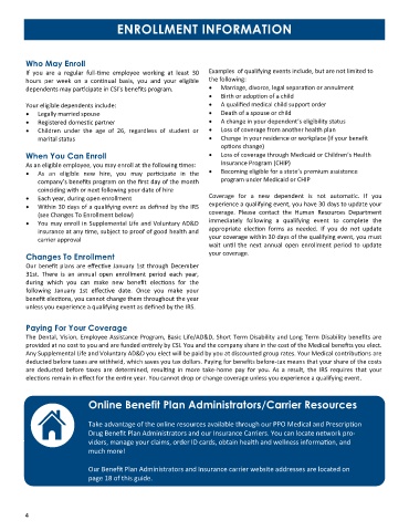 dependents may participate in CSI’s benefits program. • Marriage, divorce, legal separation or annulment