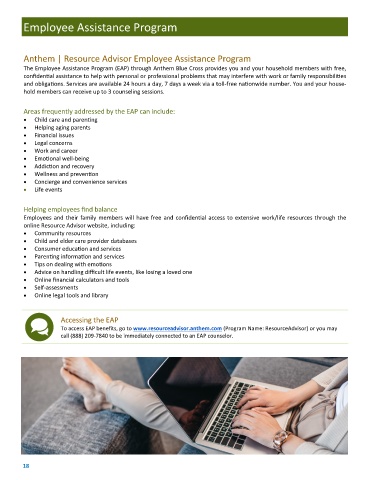 To access EAP benefits, go to www.resourceadvisor.anthem.com (Program Name: ResourceAdvisor) or you may