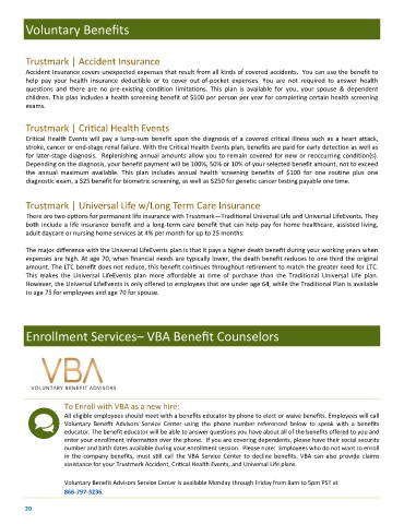 Voluntary Benefit Advisors Service Center using the phone number referenced below to speak with a benefits