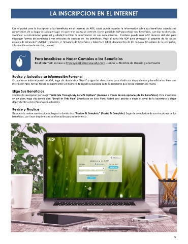 conveniente, de su hogar o cualquier lugar en que tiene acceso al internet. Use el portal de ADP para elegir sus beneficios, cambiar su dirección,