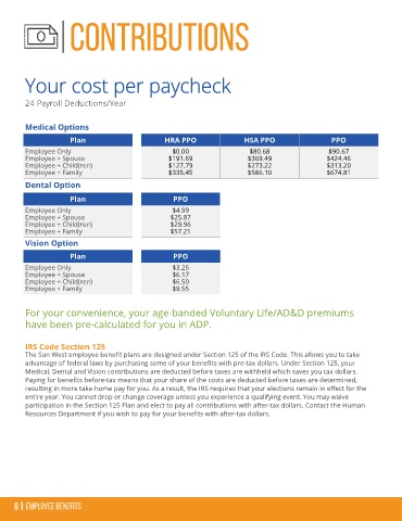 The Sun West employee benefit plans are designed under Section 125 of the IRS Code. This allows you to take