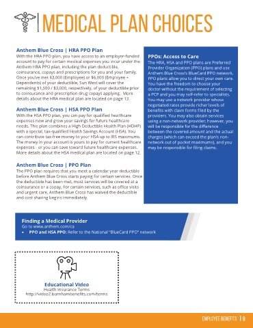 details about the HRA medical plan are located on page 13. You may use a network provider whose
