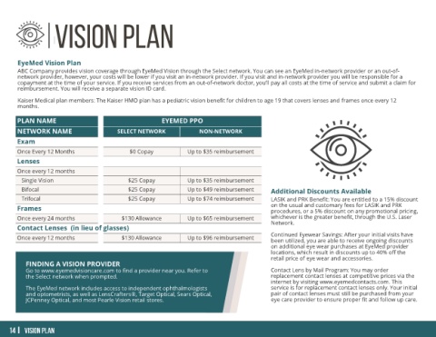 ABC Company provides vision coverage through EyeMed Vision through the Select network. You can see an EyeMed in-network provider or an out-of-