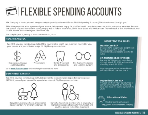 ABC Company provides you with an opportunity to participate in two different Flexible Spending Accounts (FSA) administered through Igoe.