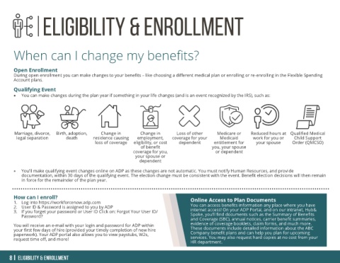 •   You’ll make qualifying event changes online on ADP as these changes are not automatic. You must notify Human Resources, and provide