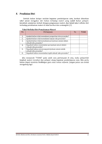 Jawablah sejujurnya terkait dengan penguasaan materi, dan Isilah tabel refleksi diri