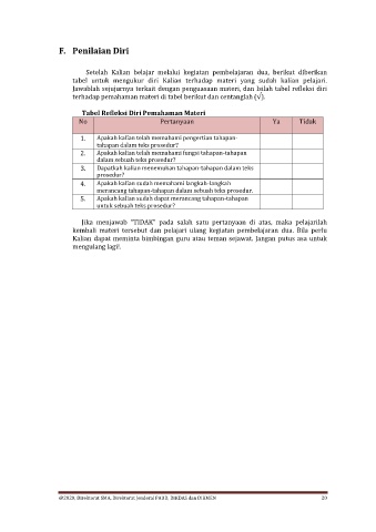 Jawablah sejujurnya terkait dengan penguasaan materi, dan Isilah tabel refleksi diri