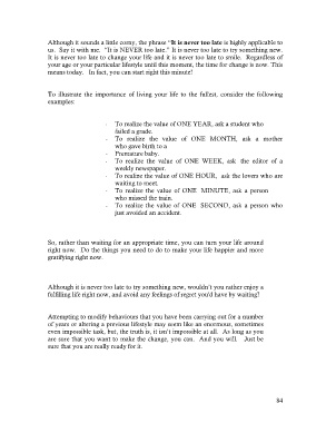 your age or your particular lifestyle until this moment, the time for change is now. This