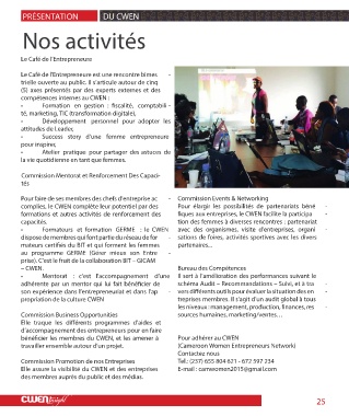formations et autres activités de renforcement des ques aux entreprises, le CWEN facilite la participa -