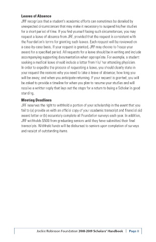 Jackie Robinson Foundation 2018-2019 Scholars’ Handbook I Page 11
