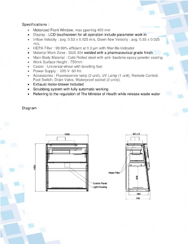 • Material Work Zone : SUS 304 welded with a pharmaceutical grade finish