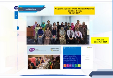 JARINGAN Program Kerjasama IPGKIK-Microsoft Malaysia : OneNote & Sway 10 April 2017 50 Bett Asia 15-16 Nov 2017