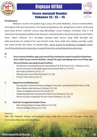 1. Yesus memerintahkan agar para murid-Nya melakukan seperti yang Dia teladankan.