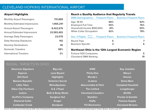Source: Airports Council International 2016, City of Cleveland Economic Development, Cleveland Hopkins International Airport, Forbes, Nielsen, Scarborough 2017