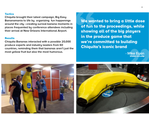 Chiquita Bananas interacted with a possible 20,000 produce experts and industry leaders from 60 countries, reminding them that bananas aren’t just the most yellow fruit but also the most humorous.