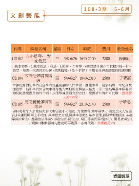 CD102 三 5/8-6/26 1630-2100 2800 陳佩玎
