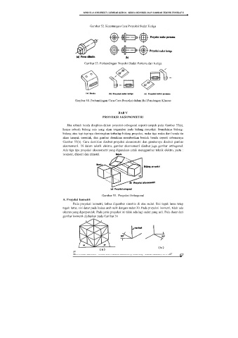 Gambar 55(b). Cara demikian disebut proyeksi aksonometri dan gambarnya disebut gambar