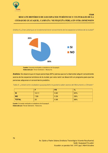 Tabla 6: ¿Usted como ciudadano guayaquileño le gustaría saber acerca del Monumento a Olmedo?