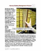 product from. Everything in that product catalog is defined and written in terms of explaining to you how you will receive value from purchasing the product. Product catalogs even use pictures of beautiful people to equate your own picture of yourself wearing or using the product. It is all about marketing. This marketing is exactly what should happen in the IT service catalog. Everything should be explained in terms of business value. What will the business get out of purchasing and using this service? It is also imperative that the information be kept up to date and accurate. Inaccurate or out of date information would definitely make a bad impression with the customer. The service catalog manager is also responsible for ensuring that this “database” is backed up up and maintained.